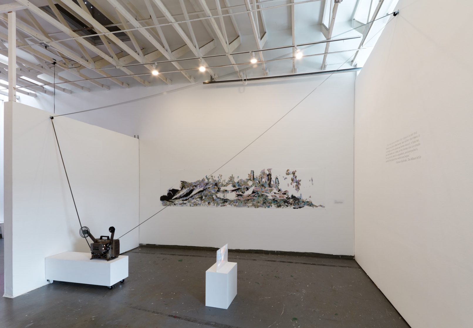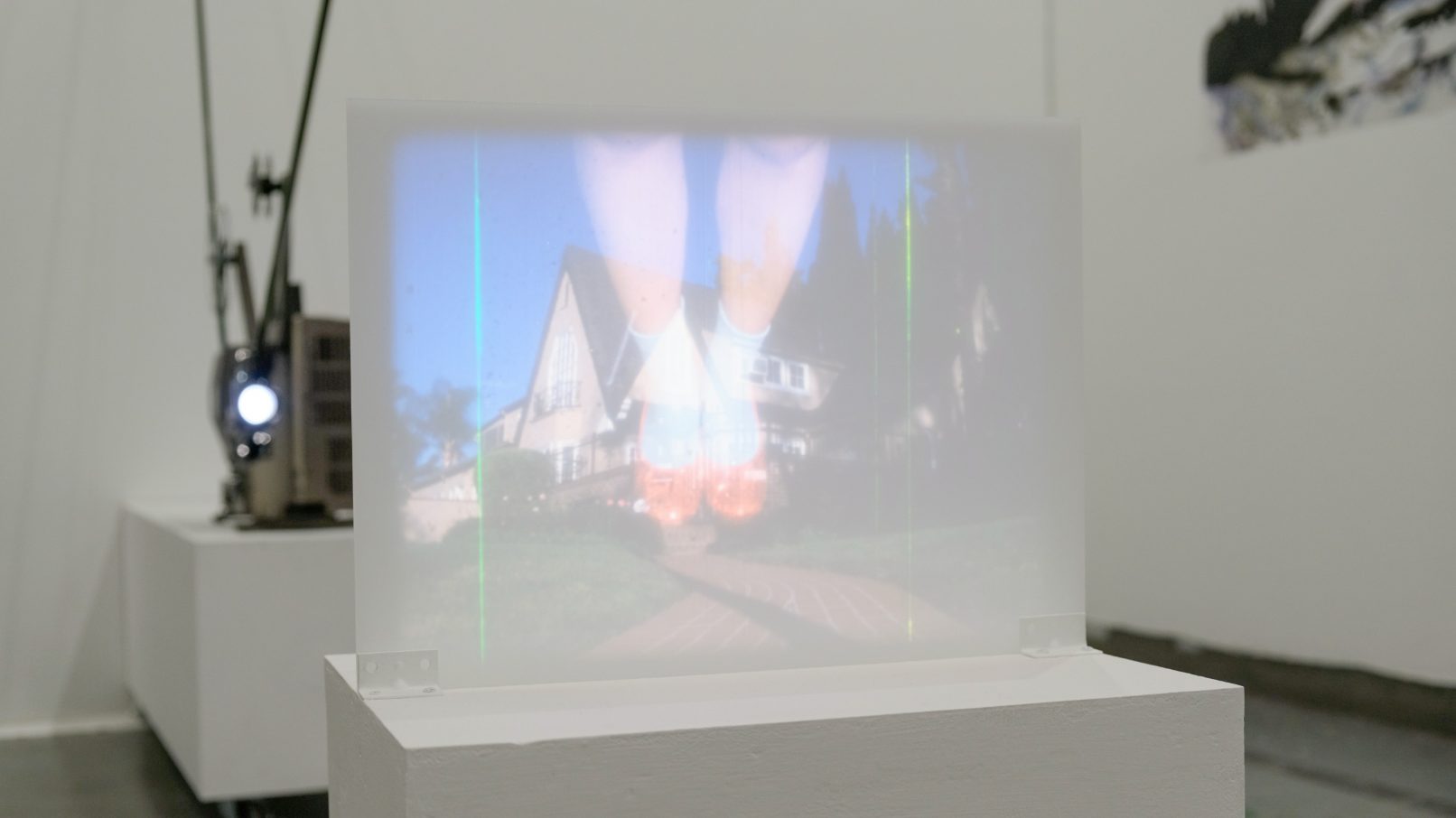 - Medium: 16mm film loop, 16mm analog projector. Motion Sensor, Plexiglass